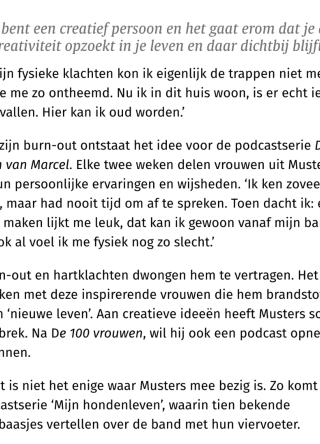 Leuk interview met Marcel in het Nederlands Dagblad over o.a. alle nieuwe plannen van Huis Mus. Zoals de nieuwe podcast Mijn Hondenleven waarin Marcel in gesprek gaat met bekende hondenliefhebbers over de band die ze met hun hond hebben, zoals Marcel die met Mika heeft. Nu in productie en vanaf 2025 in je podcastapp!