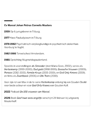 Marcel staat vandaag (28-02-2026) met een groot interview in Volkskrant Magazine. Interview door Nathalie Huigsloot en foto's door Bianca Pilet. Lees het stuk hieronder of op de website van de Volkskrant.